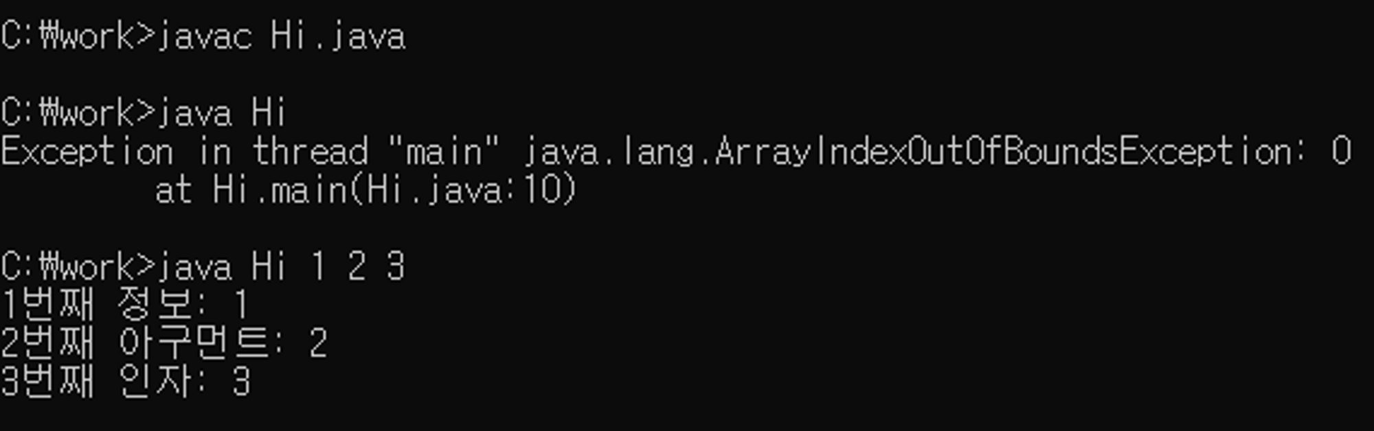 를 사용하여 구분한다.ex) java Hi 1 2 3