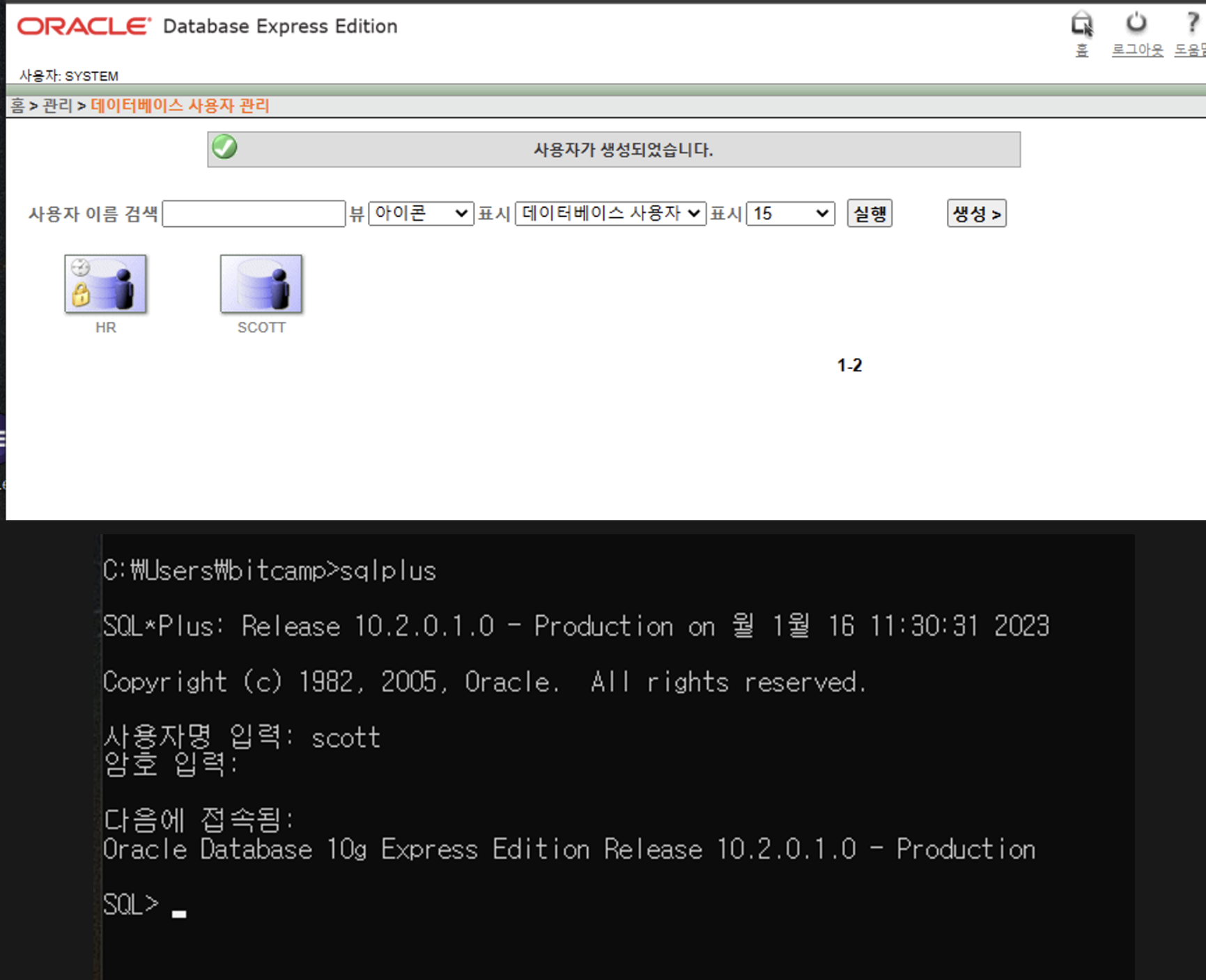 - SYS 나 SYSTEM 유저는 테이블을 생성하거나 일반데이터를 insert 해서는 안된다.